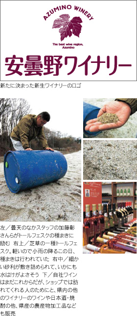 時を同じくしてショップや事務所の外装も一新した。ヨーロッパの片田舎を思わせる外装は、安曇野の地に自然に溶け込んでいる。グランドオープンは7月。それに向けて現在は、ワインのセレクトショップとカフェを運営するセンターハウスと、ワイン醸造・貯蔵場の建設工事が着々と進められている段階だ。自社農園のシャルドネやメルロー、合わせて約3000本の植樹も進められている最中で、こちらも3年後の醸造に備える。着々と月日は過ぎ、安曇野ワイナリーの〝始まり〟がまさに形づくられている。